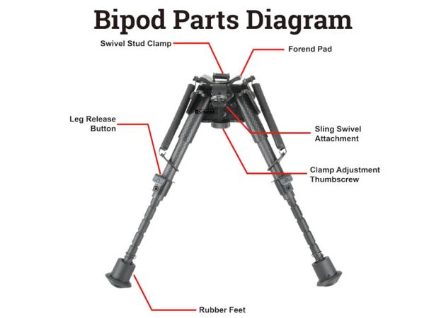 De poten schuiven automatisch uit dankzij een veerbelast systeem dat wordt geactiveerd wanneer het vergrendelmechanisme wordt ingedrukt. De hoogte van de bipod is verstelbaar in 6 standen, variërend van een minimum van 155 mm (6 inch) tot een maximum van 230 mm (9 inch). Ter ondersteuning van de uitklapfunctie bevat elke poot twee krachtige veren, die zijn ondergebracht in rubberen hulzen. Deze voorkomen dat vuil in het mechanisme komt en verminderen slijtage van de veren.