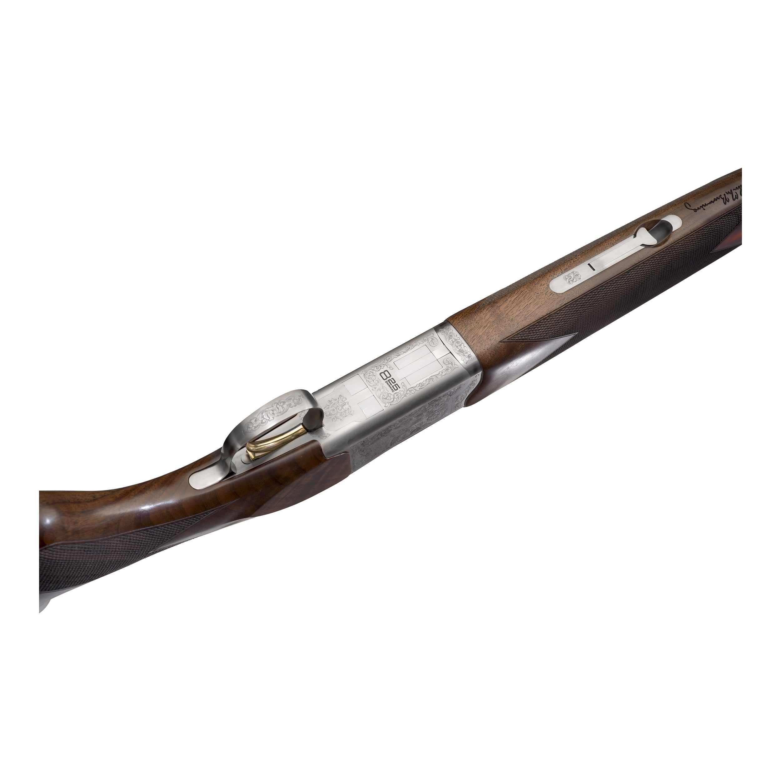 De Browning 825 heeft een nieuw vormgegeven bascule met scherpe, moderne lijnen. De bascule is bewerkt uit staal en beschermd met een duurzame zilvernitride afwerking voor verbeterde slijtvastheid, verhoogde vermoeiingssterkte en bescherming tegen corrosie. Browning biedt je er 10 jaar garantie op.