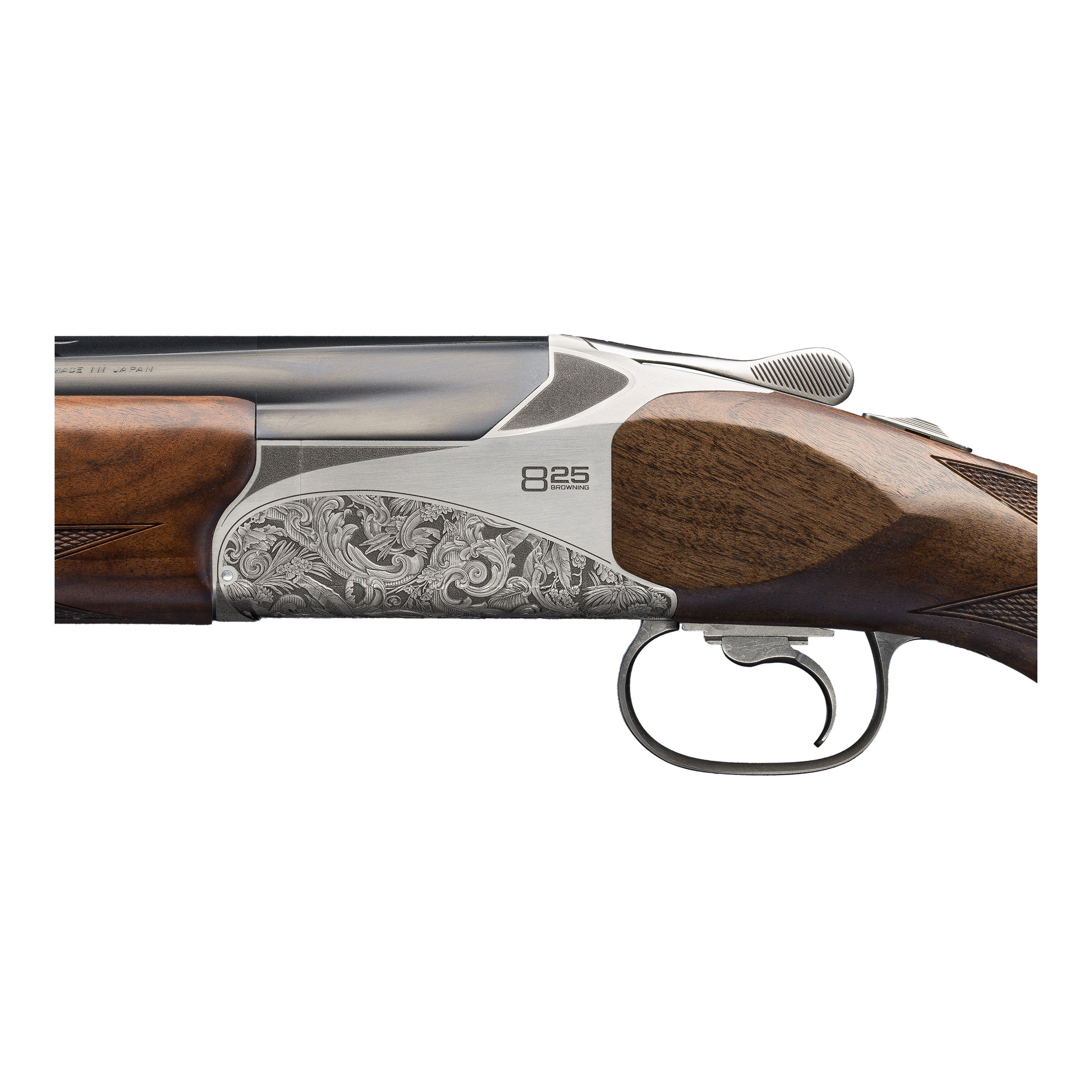 De Browning 825 heeft een nieuw vormgegeven bascule met scherpe, moderne lijnen. De bascule is bewerkt uit staal en beschermd met een duurzame zilvernitride afwerking voor verbeterde slijtvastheid, verhoogde vermoeiingssterkte en bescherming tegen corrosie. Browning biedt je er 10 jaar garantie op.
