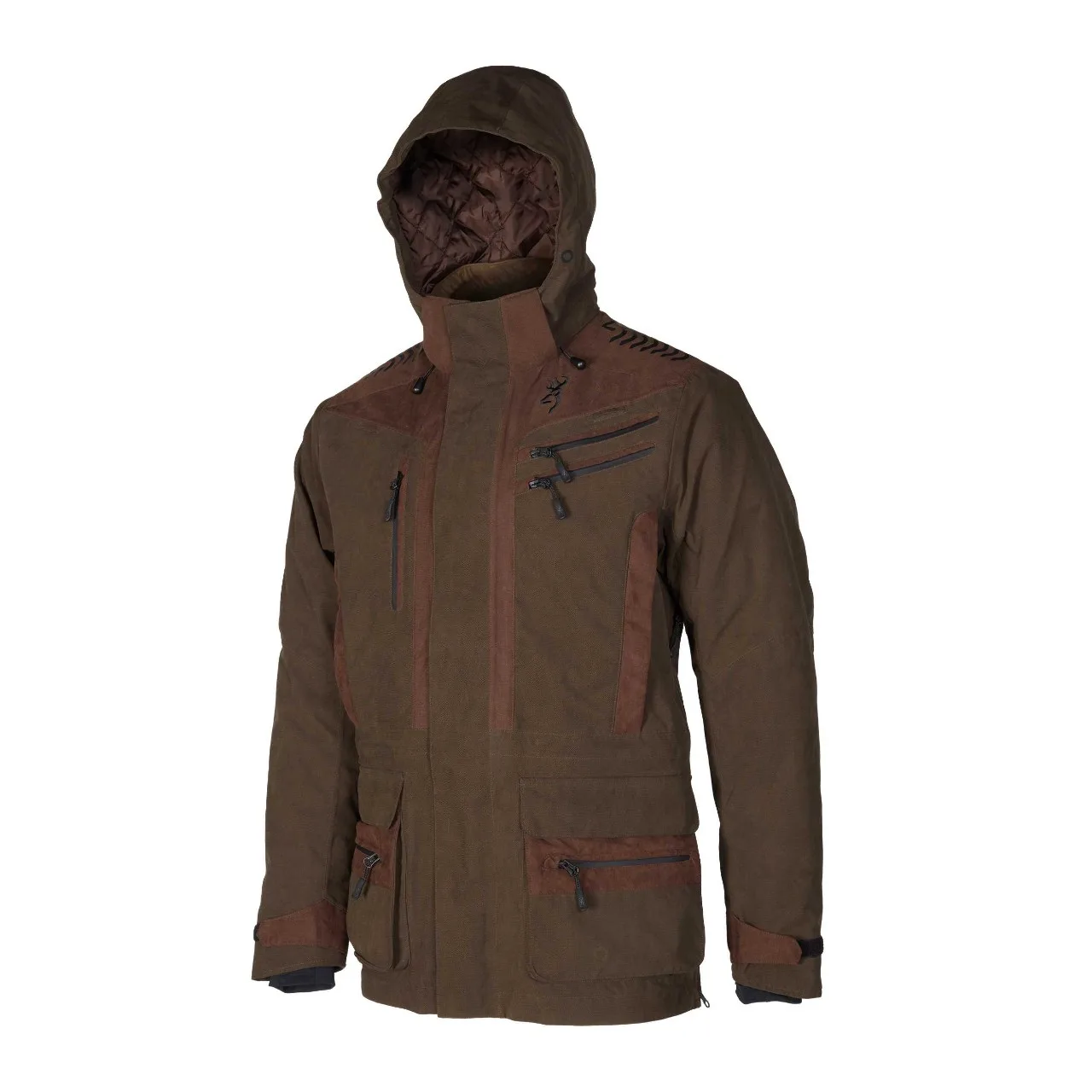 De jas is uitgerust met praktische details zoals een patronenhouder in de zakken, een ruime wildzak achteraan en anti-capillariteit in de mouwen voor extra bescherming. De afneembare sneeuw- en windstopper verhoogt het draagcomfort, terwijl de Thinsulate™ Advance voering je warm houdt zonder extra volume.