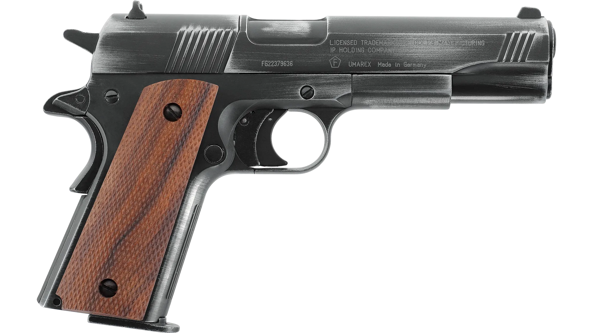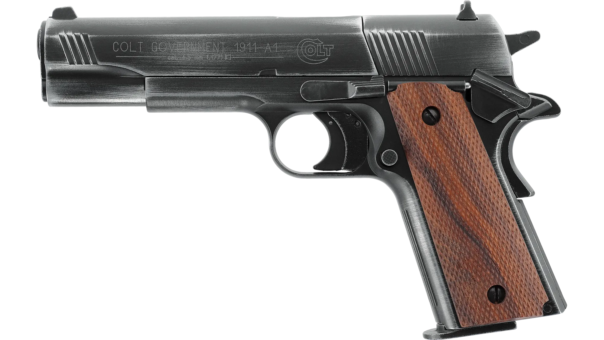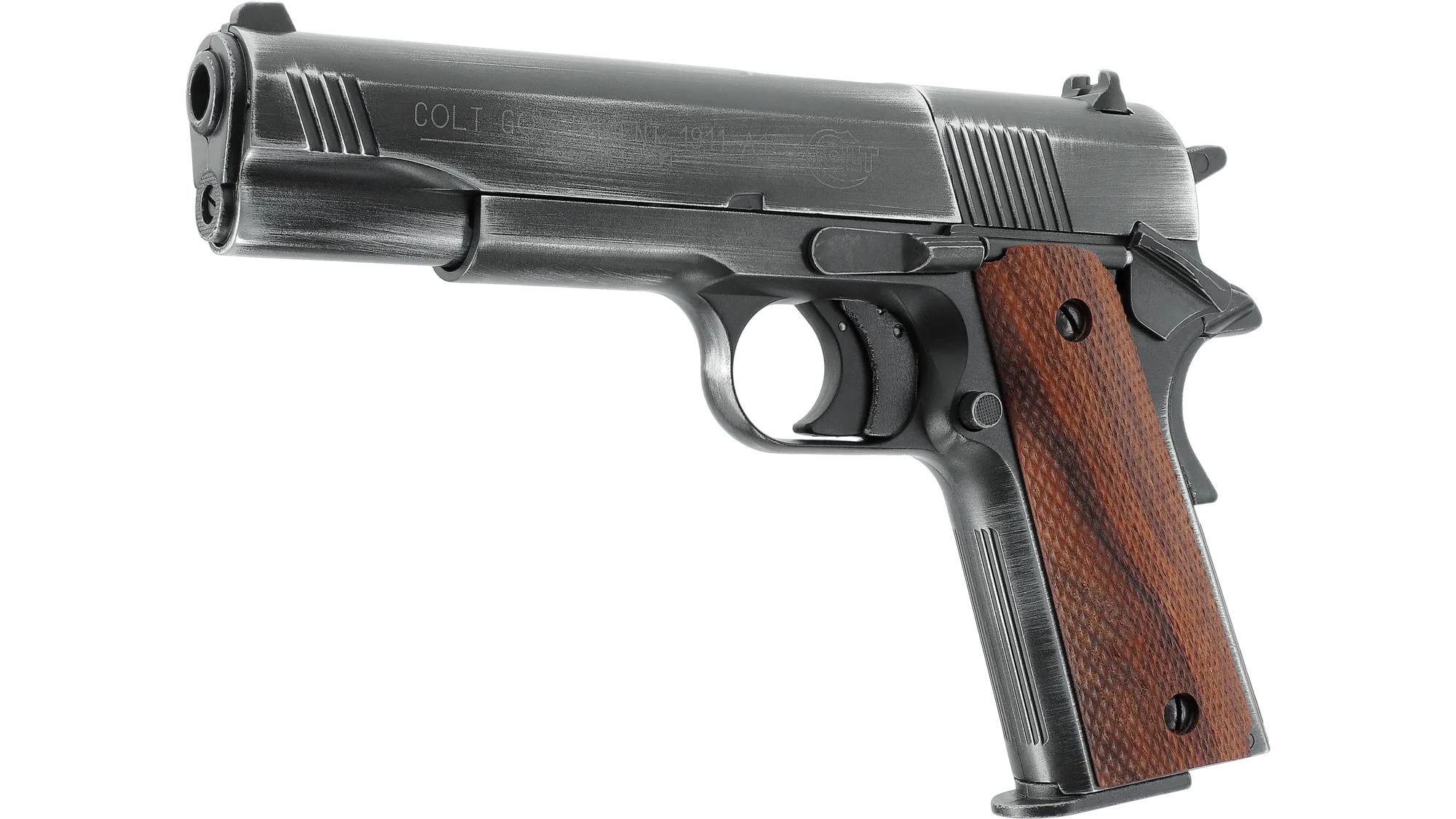 Sinds de introductie in 1911 is dit gelijknamige militaire pistool van Colt een van de bekendste pistolen ter wereld geworden. Het authentieke gebruikte uiterlijk van dit luchtdrukpistool met beperkte oplage weerspiegelt zijn lange operationele geschiedenis.