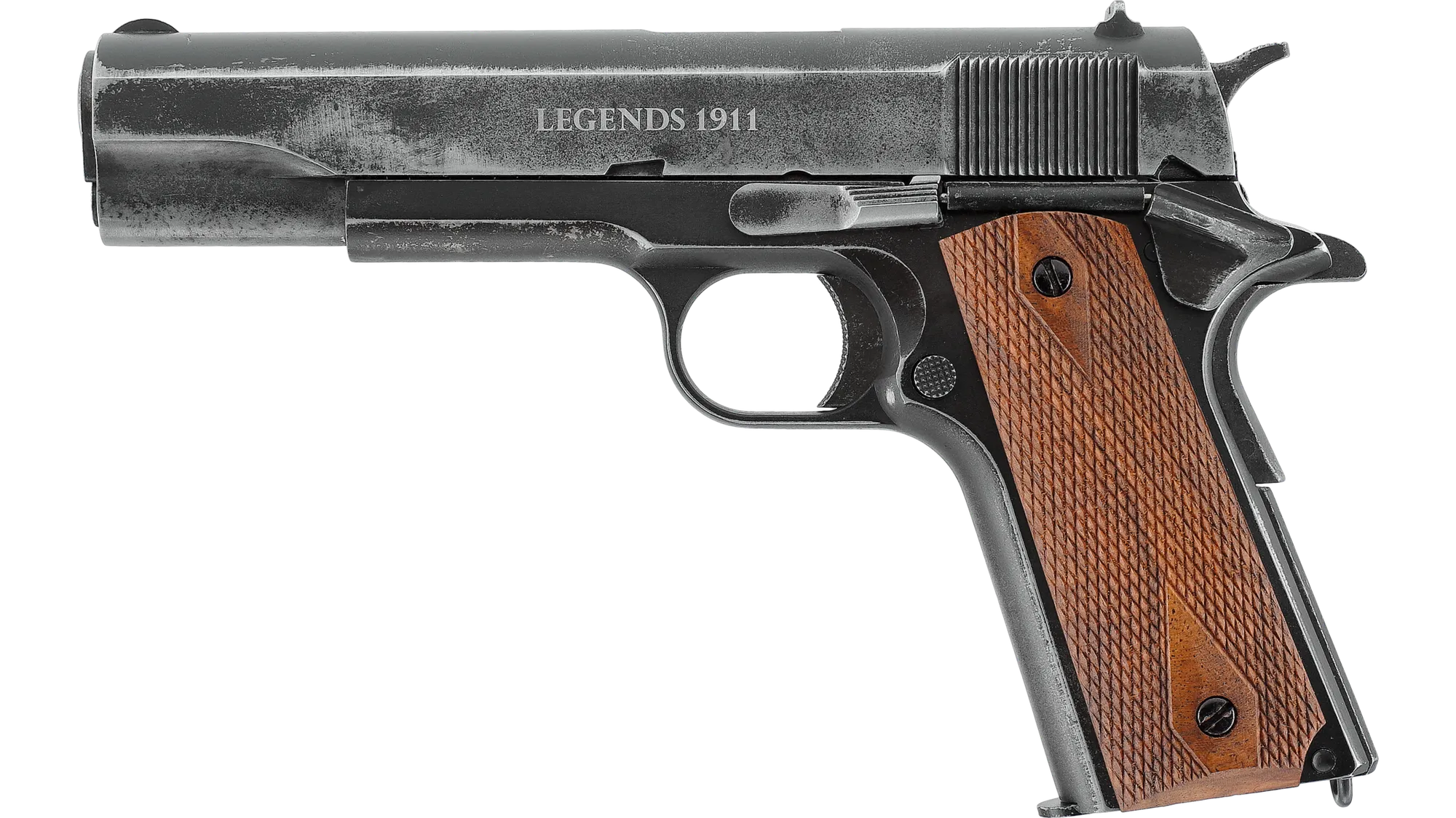 Het verweerde exterieur geeft elke Legends 1911 Vintage-pistool een uniek uiterlijk. Schutters en verzamelaars zullen onder de indruk zijn van het authentieke full-metal ontwerp en de krachtige blowback. De realistische slijtage aan de buitenkant wordt intern aangevuld met mechanische kenmerken die uitstekende plinking-prestaties garanderen. Kenmerken zoals de gecombineerde beavertail grip safety en duimveiligheid worden vergezeld door geoliede walnoothouten grepen met klassieke diamantstructuur.