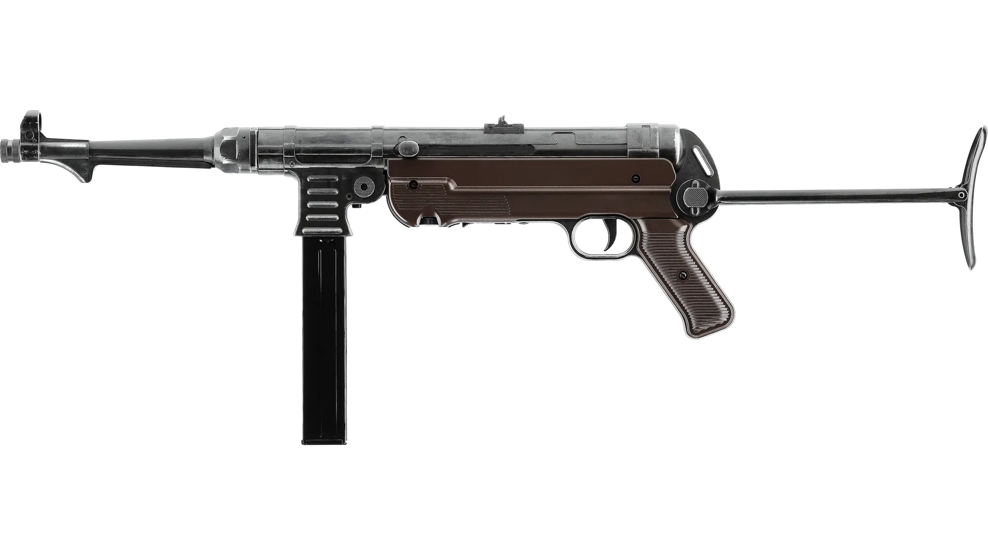 Een explosie uit het verleden: De MP German wordt aangedreven door twee 12-g CO₂-patronen en heeft 50 4,5-mm stalen BB’s in het magazijn. Het terugslageffect en het geluid zijn echt indrukwekkend. Deze Legacy Edition heeft een opvouwbare kolf en de zware, volledig metalen ontvanger heeft een gebruikte look voor een authentiek jaren 1940 uiterlijk.