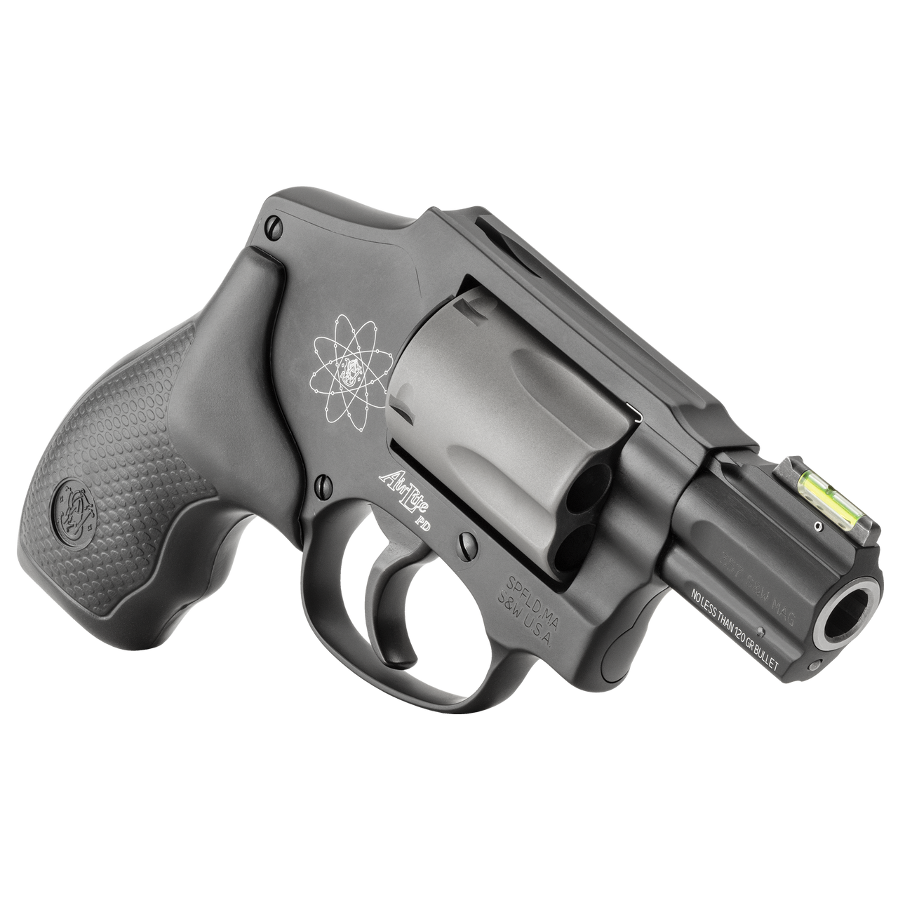• Lichtgewicht scandiumlegering frame voor eenvoudig dragen • Cilinder van titaniumlegering • Roestvrijstalen loop • Lichtgewicht – slechts 11,8 ounce • Vast, ingesloten hamer (snag-free) • HI-VIZ® Fiber Optic Green korrel • Geschikt voor continu gebruik met +P munitie